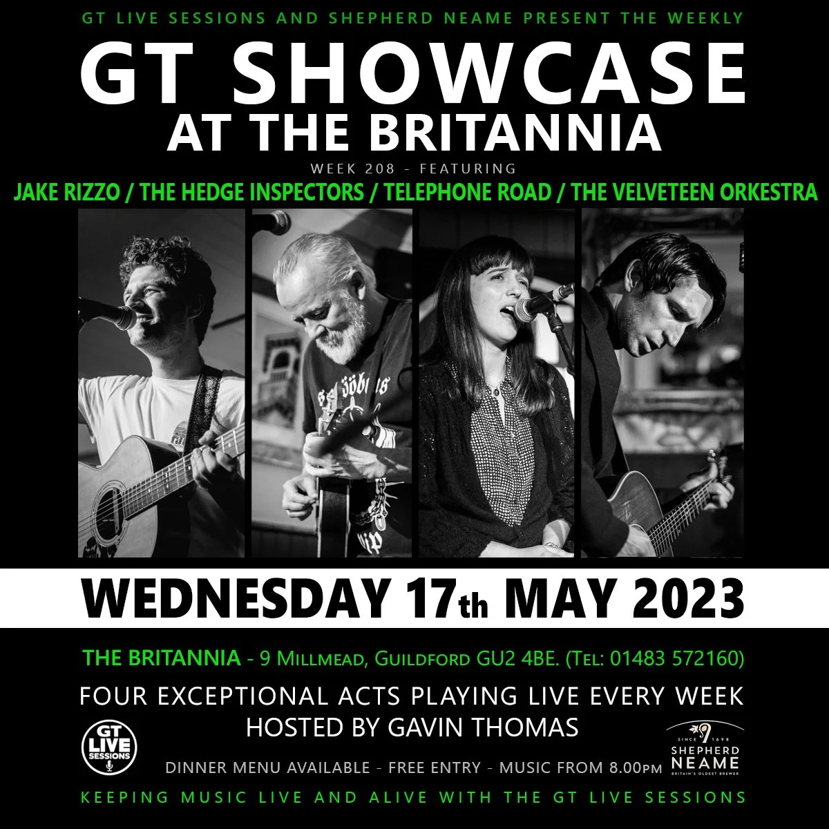 The GT Live Sessions take place at The Britannia (GU2 4BE) every Wednesday evening from 8.00pm. Please note these are 'Showcase Sessions' with invited acts, not 'Open Mic' nights.